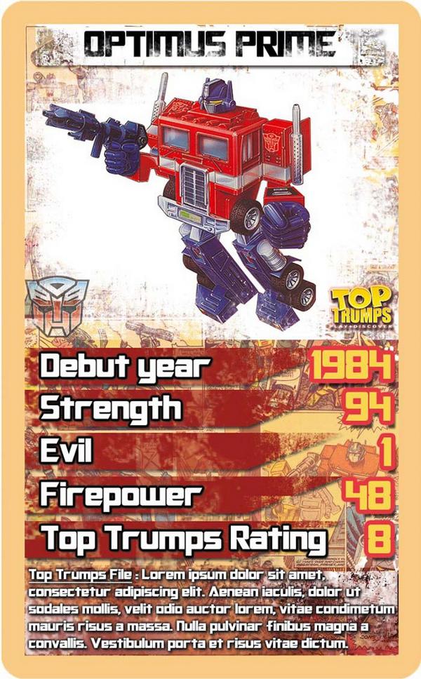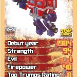 I’ve been a fan of Top Trumps ever since I was a kid. Despite its simplicity, it’s a fun, compelling game and the sheer diversity of licences that have been attached to the brand in recent years have made it truly collectible. Gone are the days of sports cars, military vehicles, and relatively mundane subjects… now it’s blockbuster movies, entertainment franchises, kids cartoons and everything in between. Joining the ranks of their first two movie sets and the pack based of Transformers Prime, and released with surprisingly little fanfare, came this G1 set to coincide with the 30th Anniversary of Transformers…